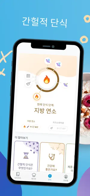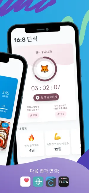 - 단식 플래너: 간헐적 단식을 하는 분들을 위한 16:8, 18:6 등 다양한 단식 모드 제공