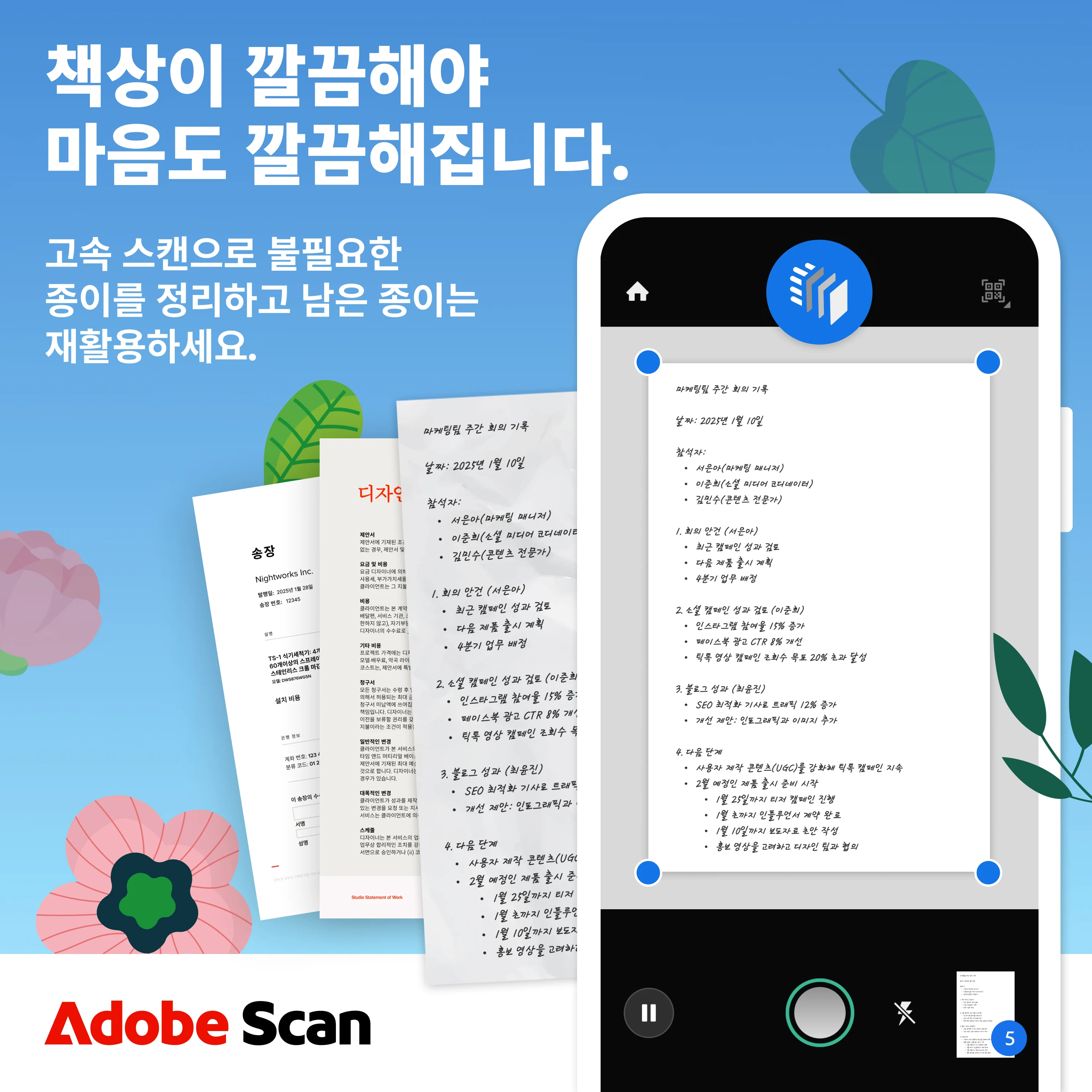 📍 Adobe Scan은 심플하고 광고 없는 환경에서 깔끔한 스캔을 원하는 학생, 일반 사용자에게 추천합니다.