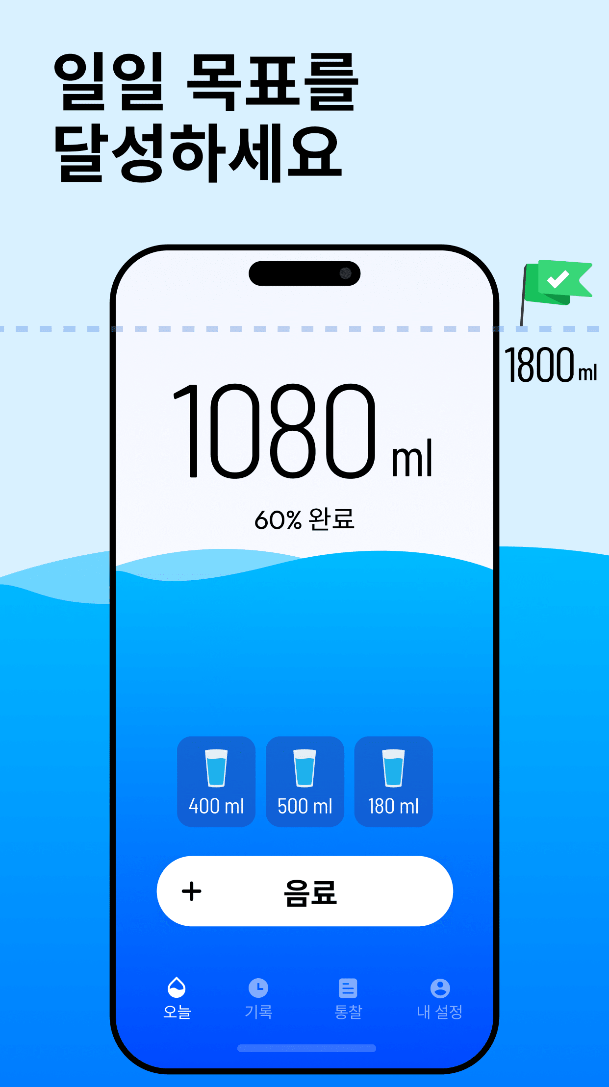 맞춤 알림·통계·위젯으로 건강한 물 마시기 습관을 완성하세요.