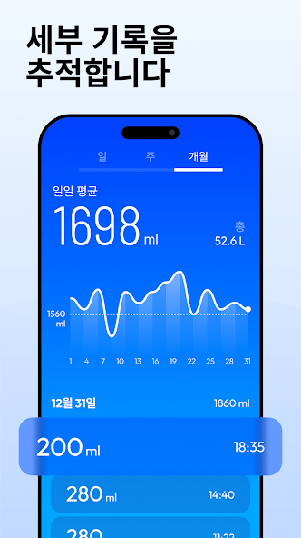 간편한 기록과 통계 기능으로 일관된 물 마시기 습관을 도와주는 스마트폰 애플리케이션입니다.