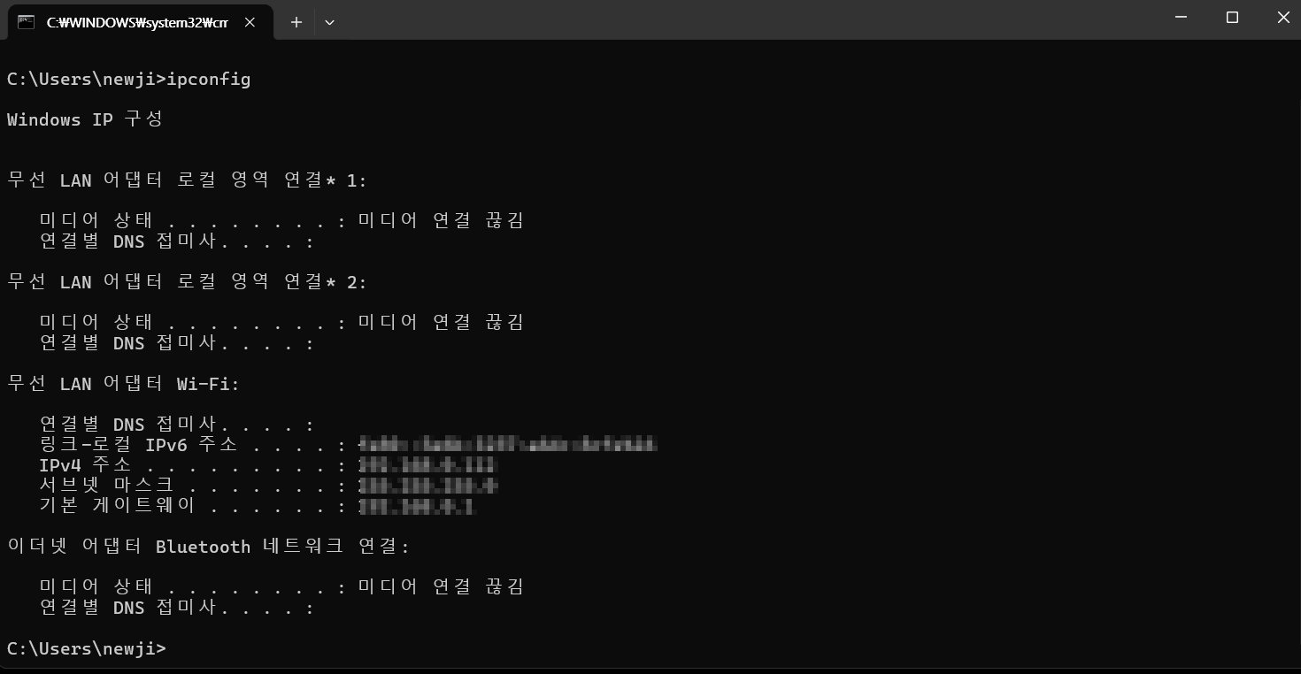 - 윈도우에서 ipconfig 명령어 하나로 쉽게 내 IP주소를 확인할 수 있어요.