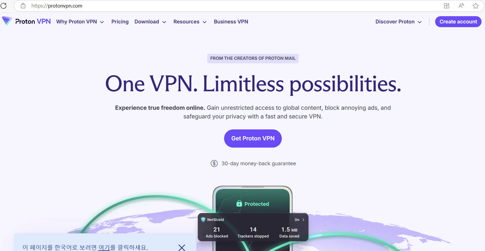 - 기본 무료 플랜도 제공하는 신뢰성 높은 VPN.